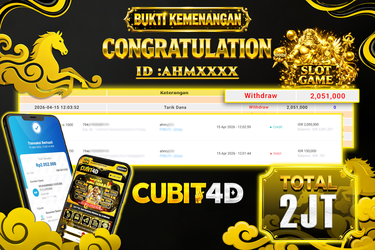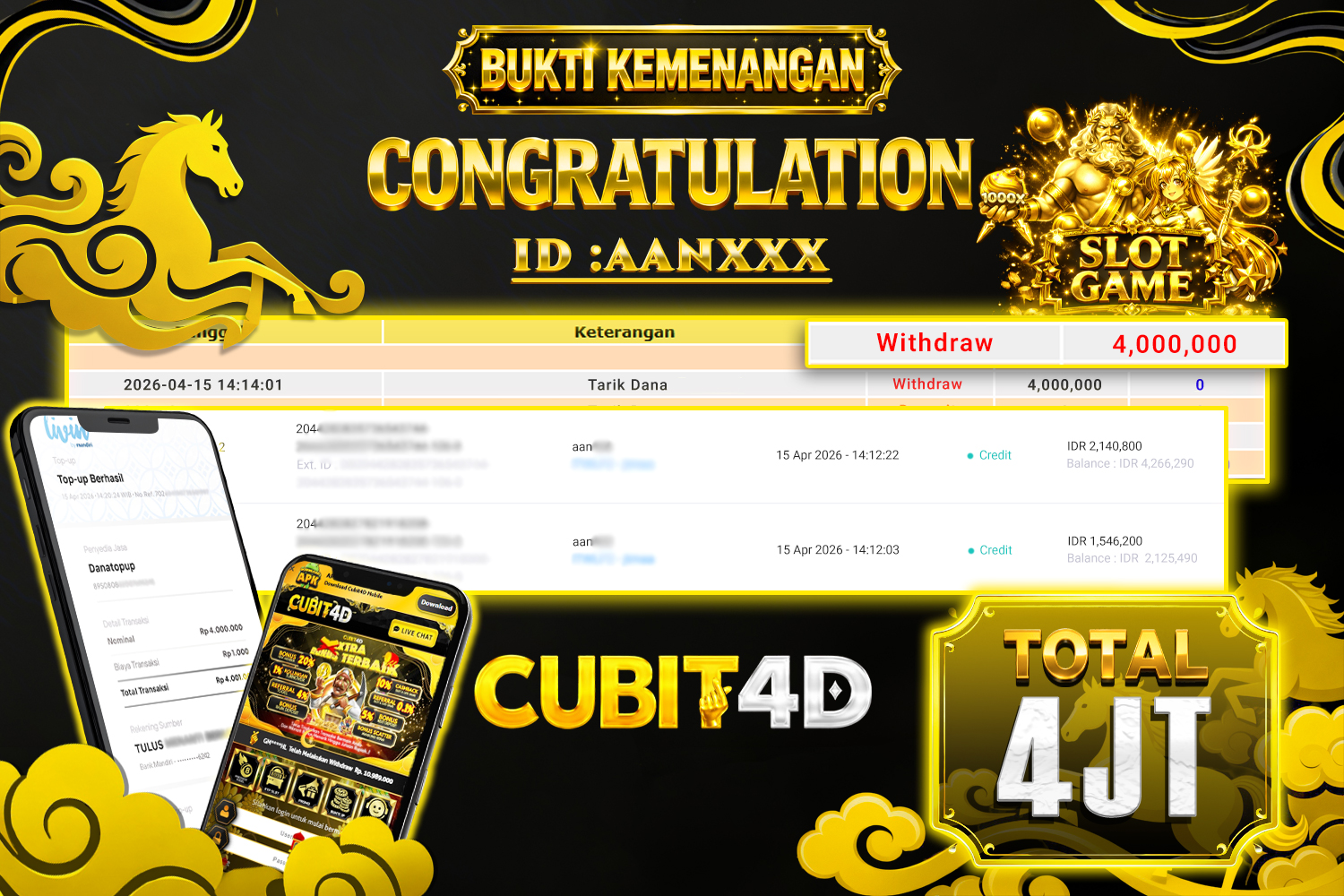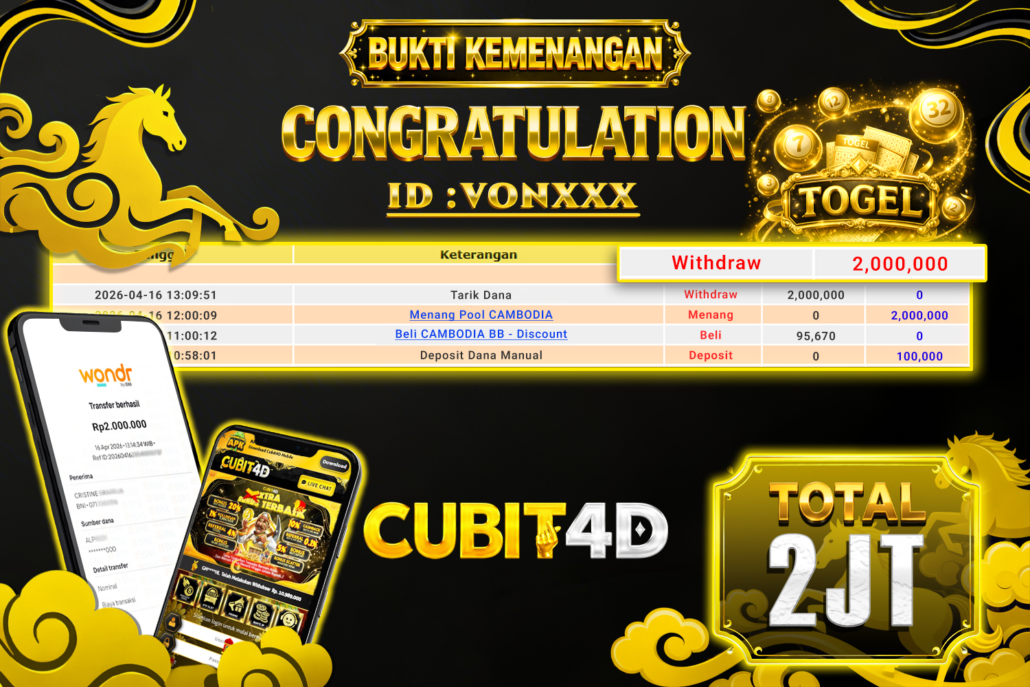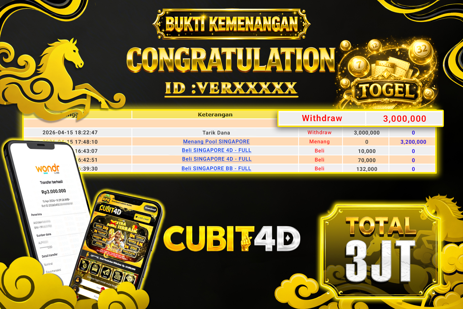 CUBIT4D JACKPOT PCSO Rp. 3.000.000,- LUNAS