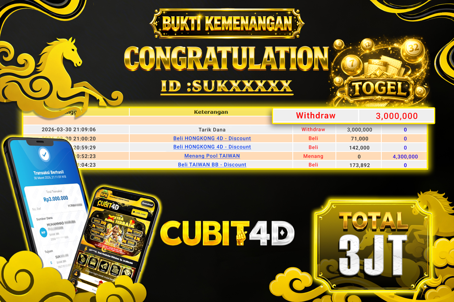 CUBIT4D JACKPOT BULLSEYE Rp. 2.000.000,- LUNAS
