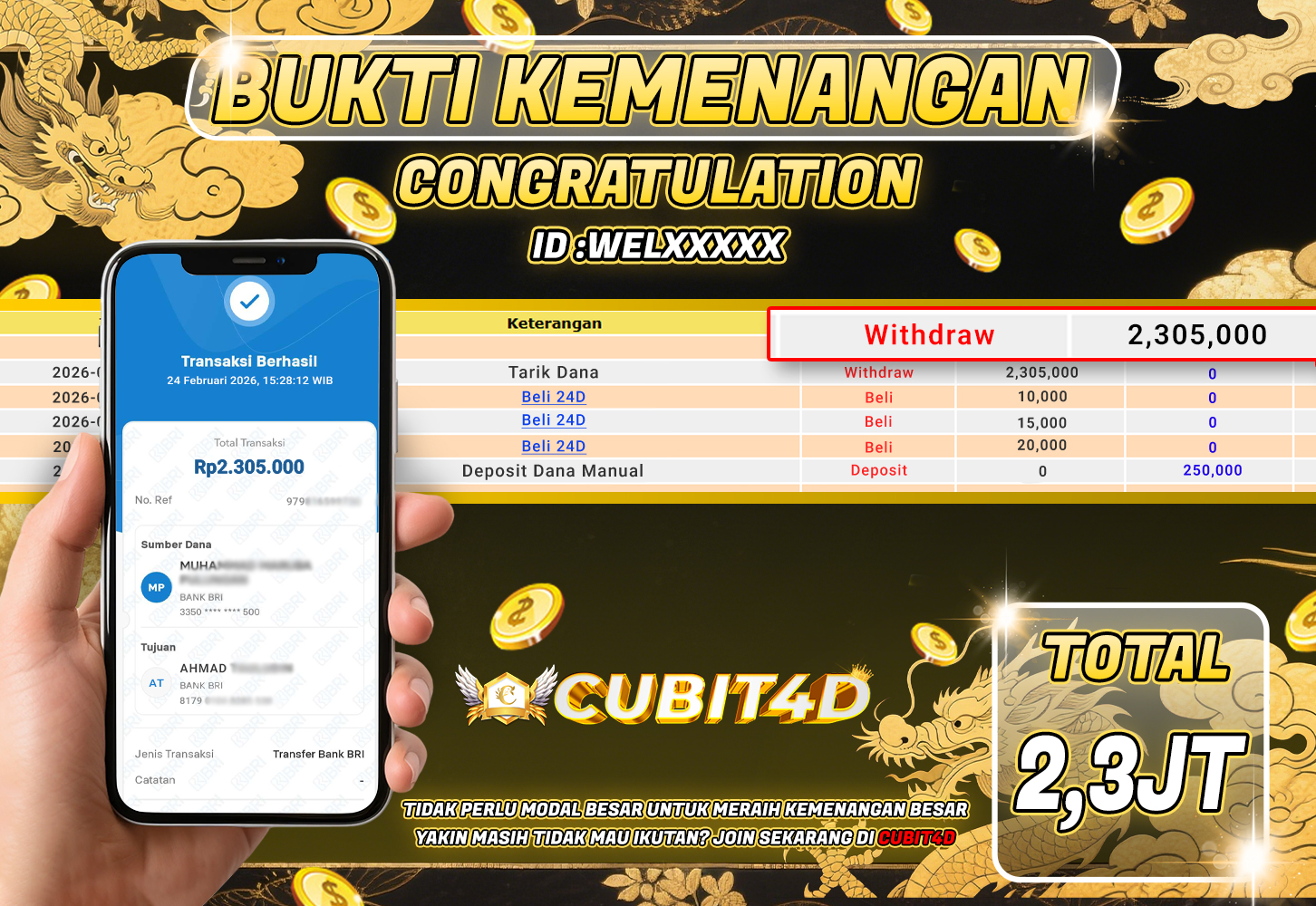 CUBIT4D JACKPOT CAMBODIA Rp. 4.500.000,- LUNAS