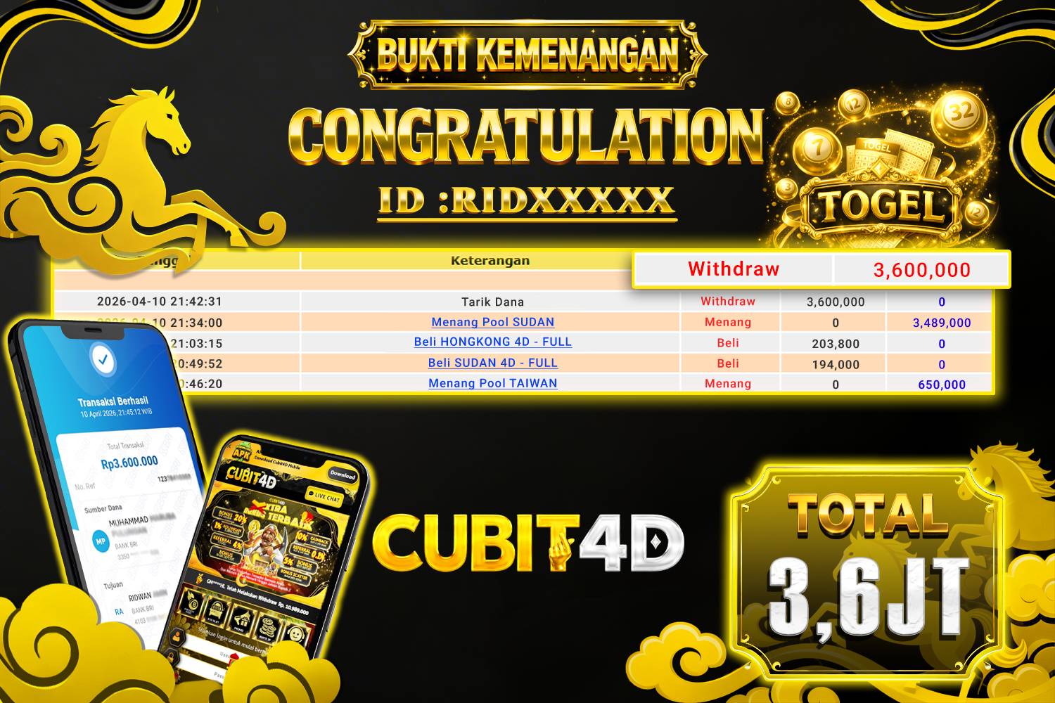 CUBIT4D JACKPOT RIVERSIDE Rp. 3.000.000,- LUNAS